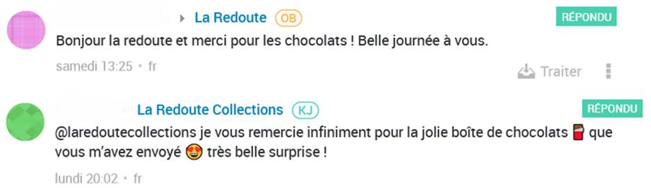 • Nombreux commentaires spontanés sur les réseaux sociaux, remerciant La Redoute pour cette attention