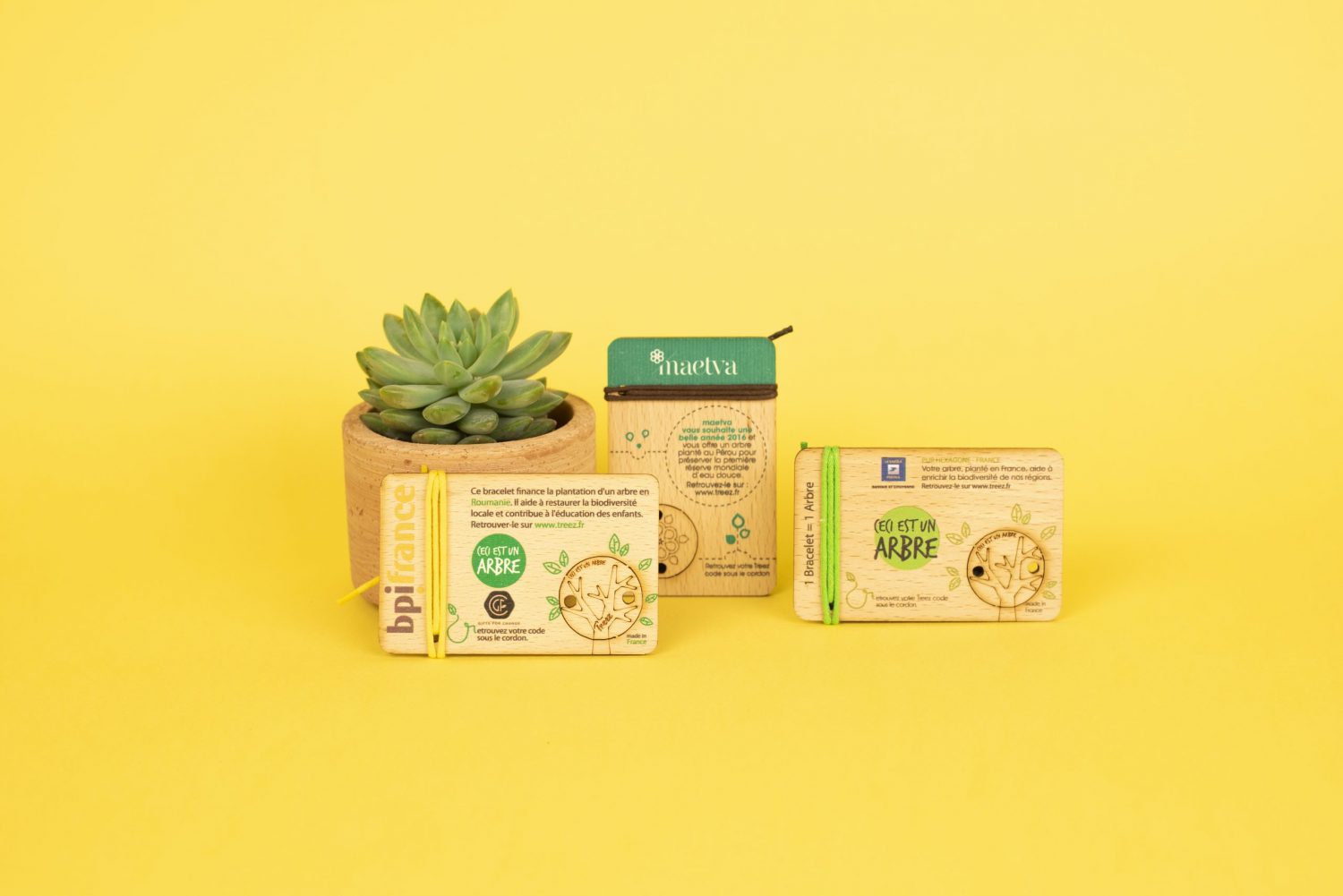 Nos best sellers sont le bracelet éco-responsable “Imagine”, les porte-clés en bois écolo “Sésame”, le badge écologique en bois “Tourond”, l’étiquette de bagage en bois “Utopia”, les stickers en bois “Woodstick”. Nos Totebags “Totem” et “Plume” rencontrent aussi un grand succès car, associés à une grande cause sociale ou environnementale, et avec une illustration originale, ils représentent un excellent levier d’engagement et de rayonnement pour les acteurs de la distribution tels que la GMS, les magasins de prêt-à-porter, les magasins spécialisés, les enseignes cadeaux, sport et nature etc…