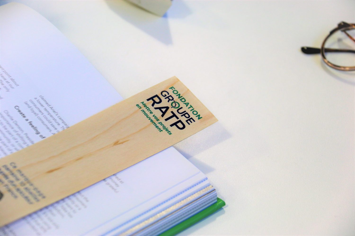 Marque page en bois réalisé en France personnalisé en quadrichromie sans blanc