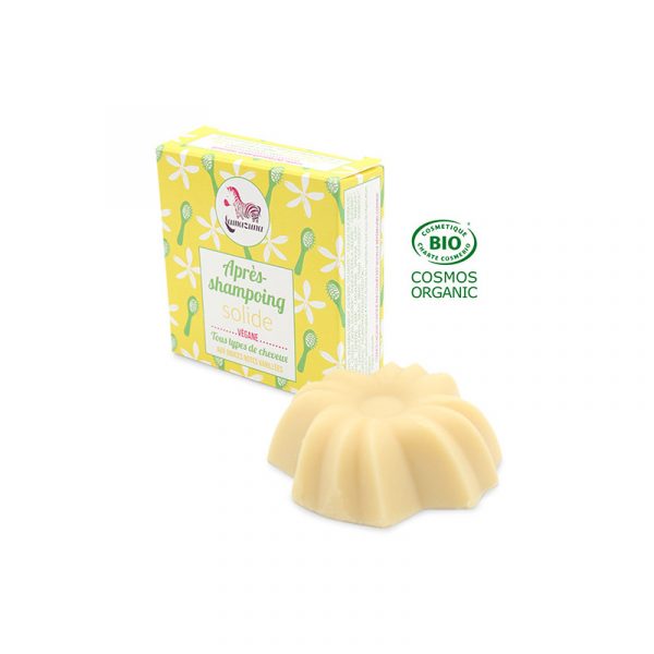 L’après-shampoing solide bio à la vanille qui nourrit les cheveux et facilite le coiffage
