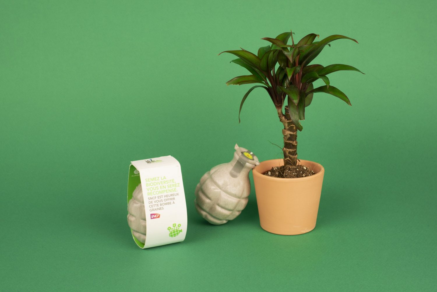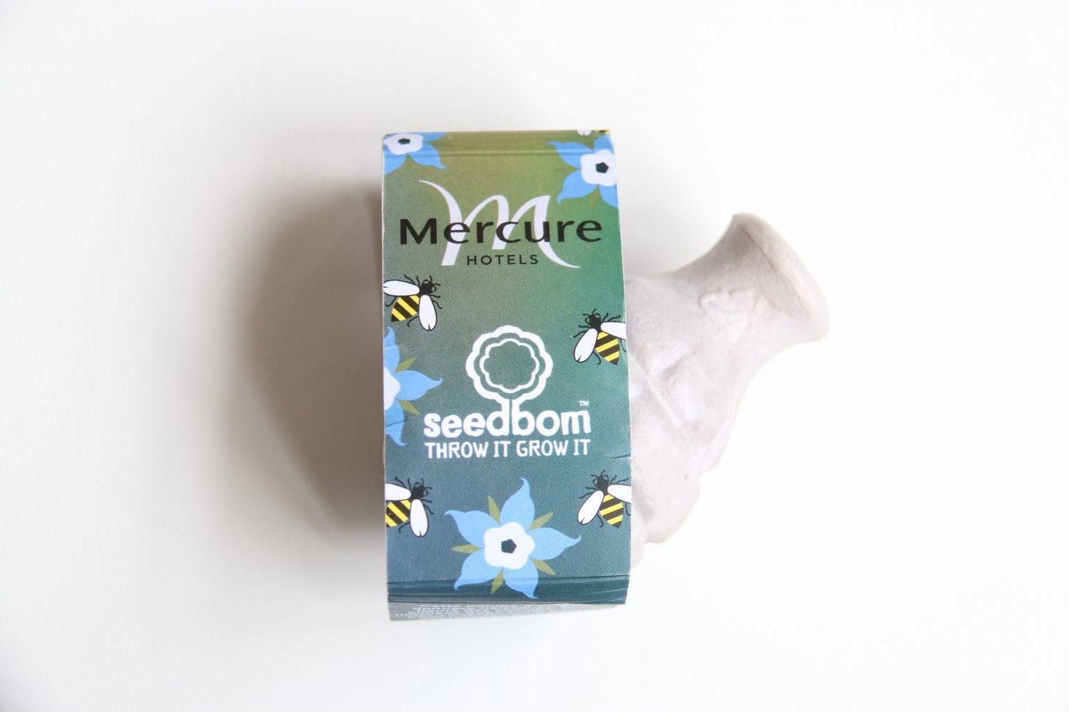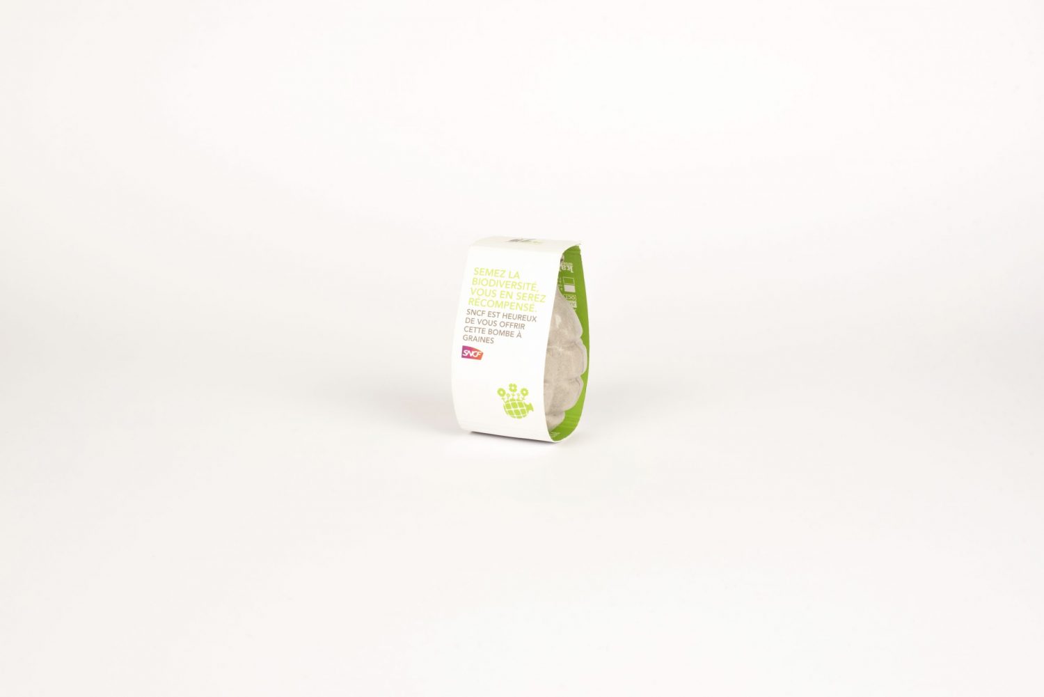 Bombe à graines en amidon biodégradable contenant des graines mellifères avec son étui personnalisable en quadrichromie recto